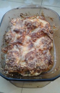 - Egy kivajazott tepsibe leterítjük a hús felét, rásimítjuk a gombás keverék 2/3-át,betakarjuk a hús másik felével és rátesszük a maradék gombát. Megszórjuk a reszelt sajttal, és 180 fokos sütőben 45-60 perc alatt készre sütjük.